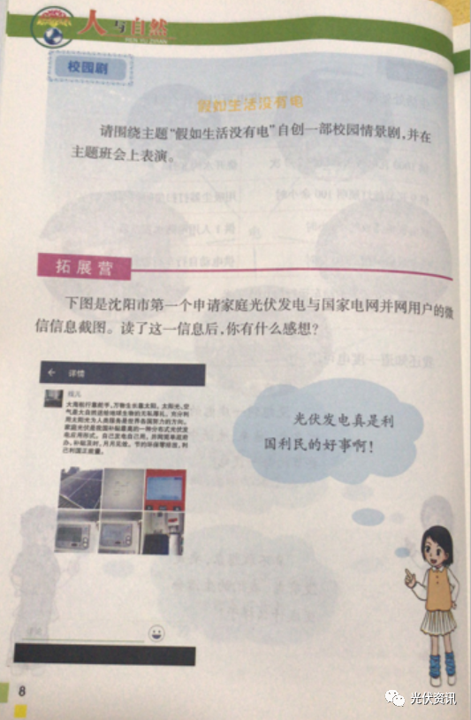 光伏發電已經被收入小學四年級課本《人與自然》!